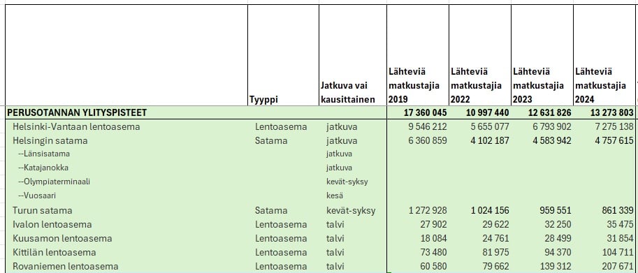 Yhteensä valittujen rajanylityspisteiden kautta poistui noin 90 % lentoasemien ja satamien kautta lähtevistä matkustajista. Osuus on kuitenkin ulkomaisten matkustajien osalta oletettavasti suurempi. Lisäksi itärajan ylityspisteiden osuus oli yli 15 % vuonna 2019 ja itäraja on jo hiljentynyt merkittävästi vuoden 2022 lopulla.