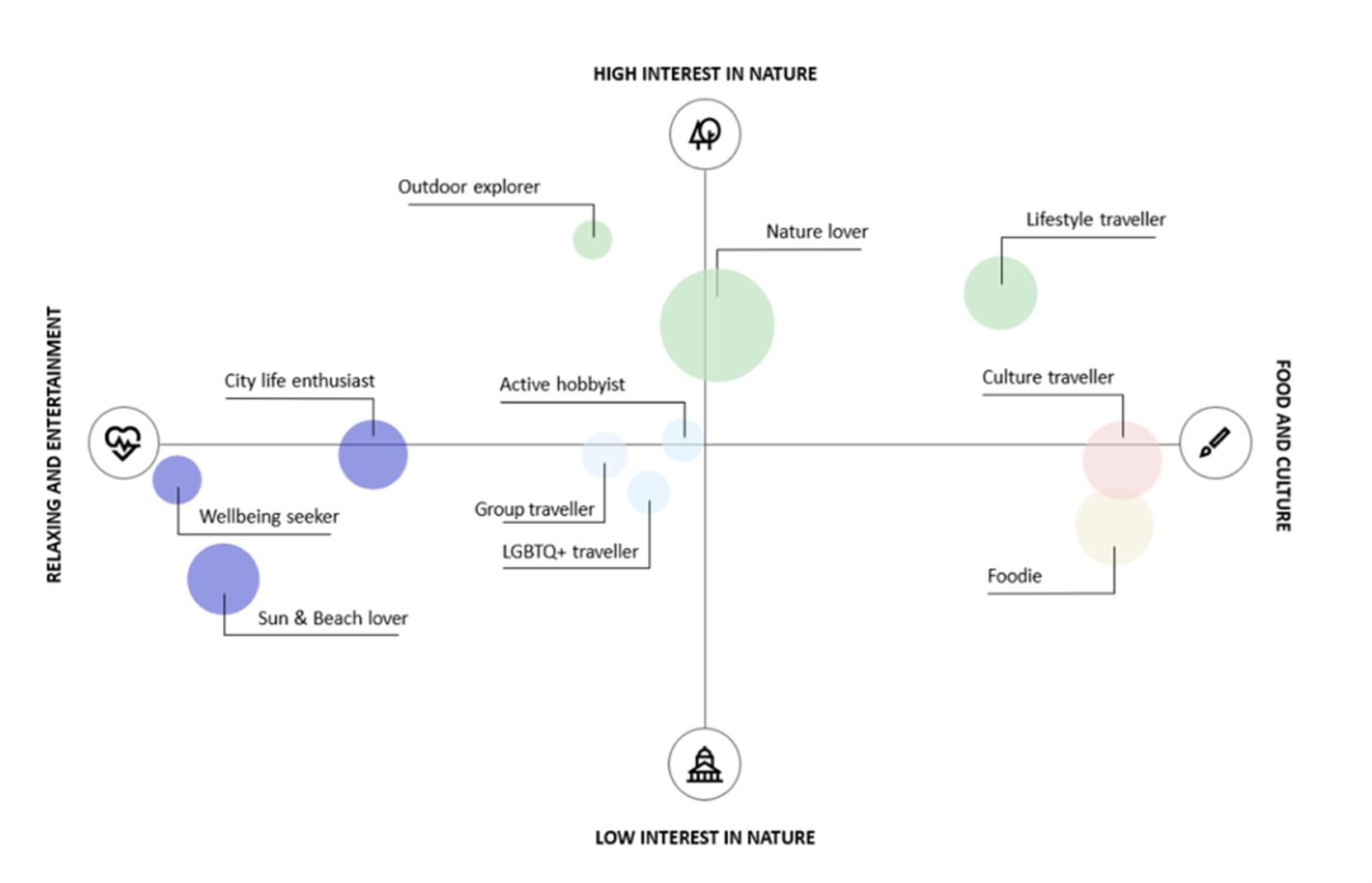 - Segmenttien matkailijat ovat kokeneita ja usein matkustavia. Kaikilla kohderyhmillä on myös hyvä ostovoima, joskin osa on silti tarkka rahankäytöstään.