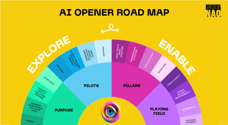 GroupNAO on jakanut tekoälyn haltuunoton neljään vaiheeseen, jossa kasvatetaan matkailuorganisaatioiden henkilöstön ymmärrystä tekoälyn mahdollisuuksista ja tuetaan tehokasta käyttöönottoa.